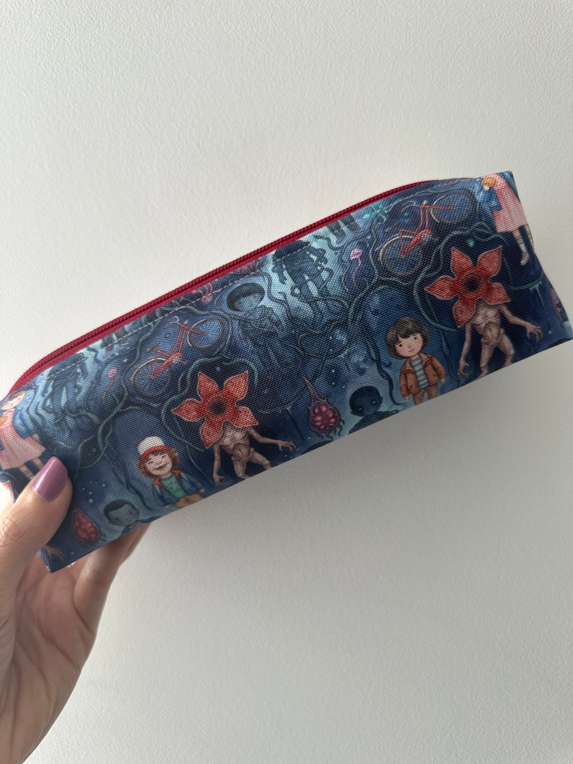 No dejes escapar este estuche artesanal inspirado en el universo retro y misterioso de Stranger Things. Con estampados llenos de guiños a la icónica serie, esta pieza combina estilo, nostalgia ochentera y la calidad de un producto hecho a mano con mimo. Con unas dimensiones aproximadas de 22 x 7 x 7 cm, es ideal para organizar tus bolígrafos, pinceles o multitud de accesorios con estilo. Perfecto para regalar o para acompañarte en tu día a día, este estuche combina calidad, originalidad y practicidad.