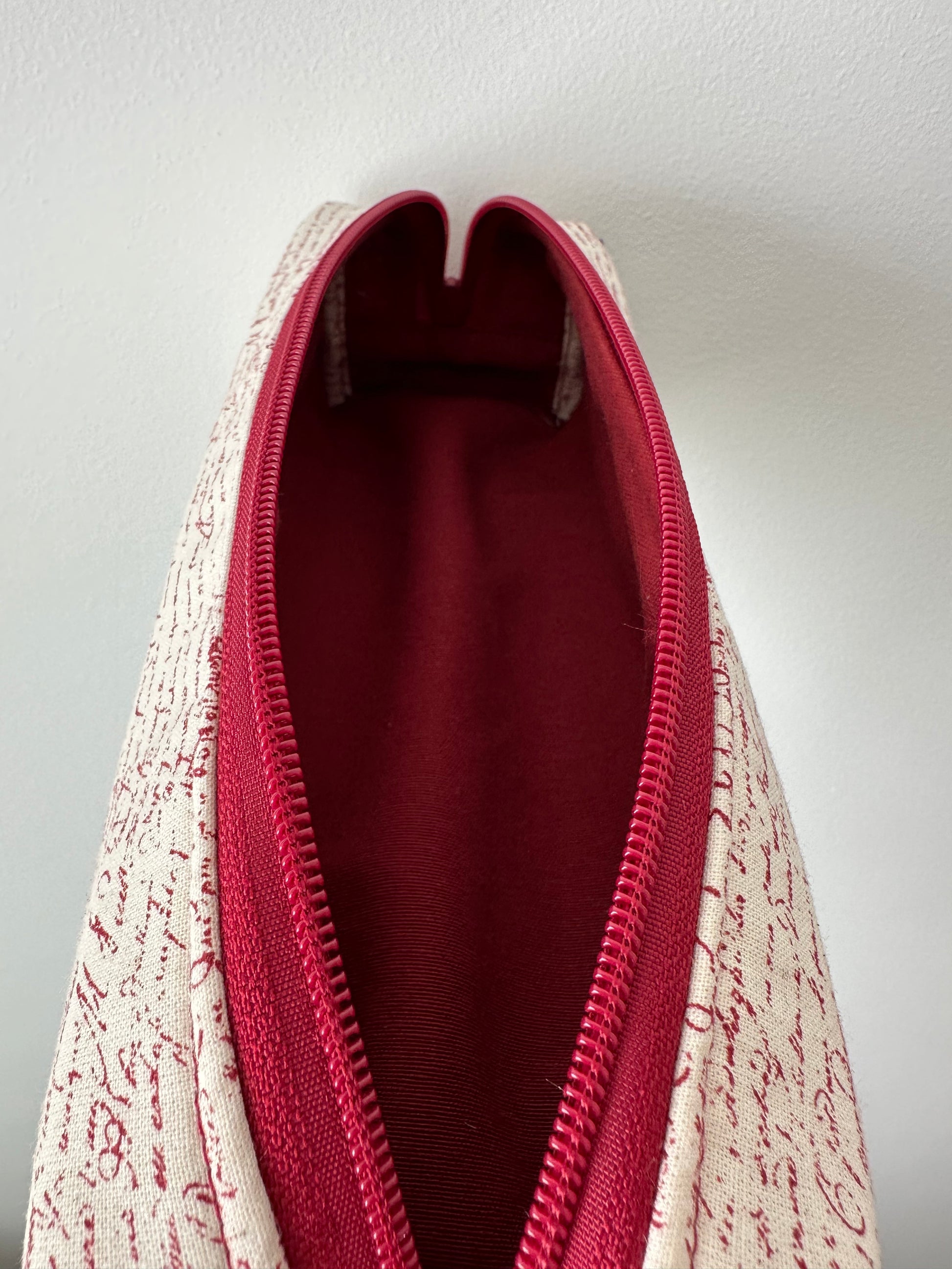 Su tejido resistente y suave al tacto, junto con la cremallera en tono burdeos, lo convierten en un accesorio único para personas que valoran la artesanía y el diseño sostenible.