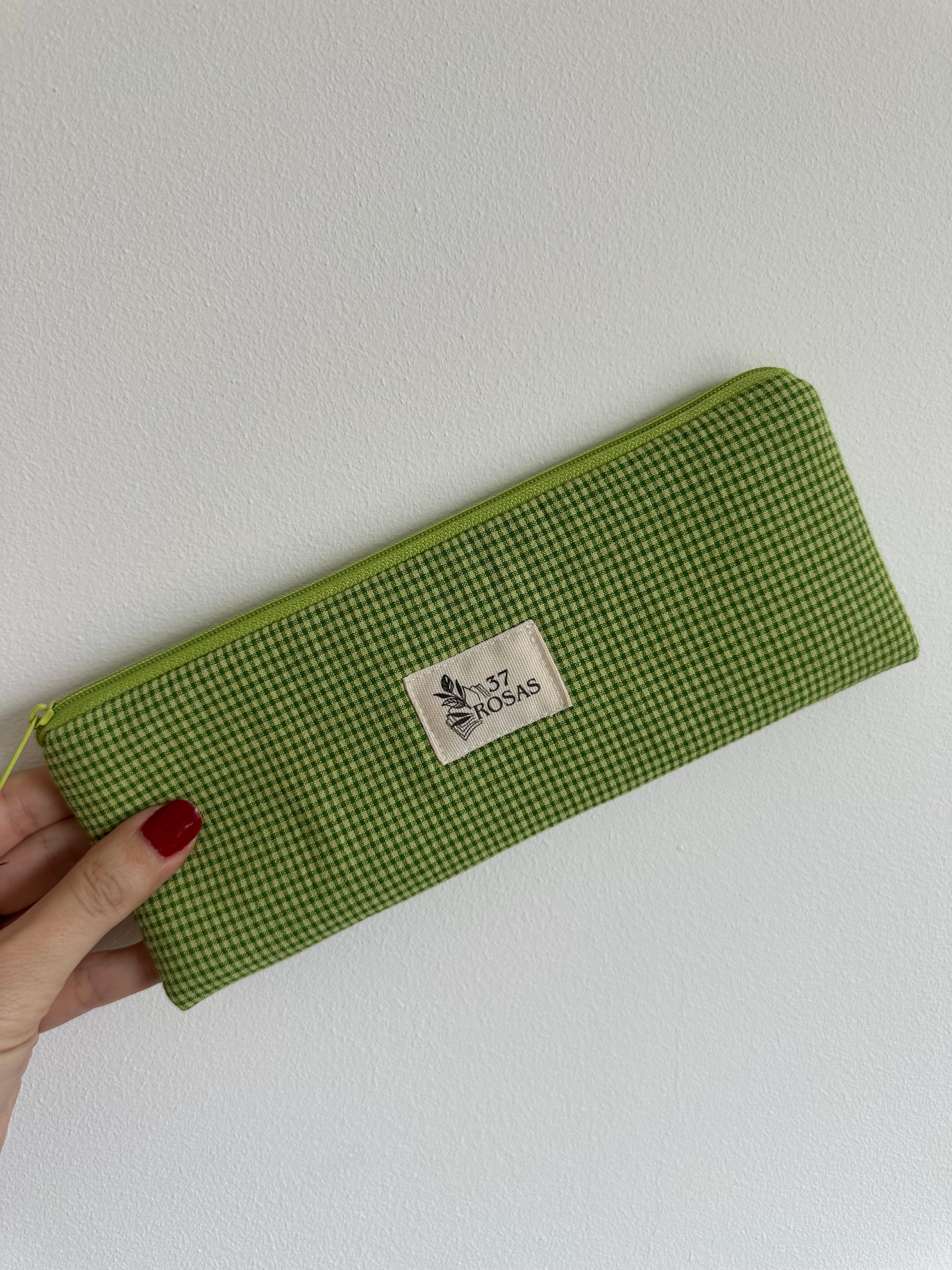Estuche plano Vichy Lima - Hecho a mano - 37 Rosas