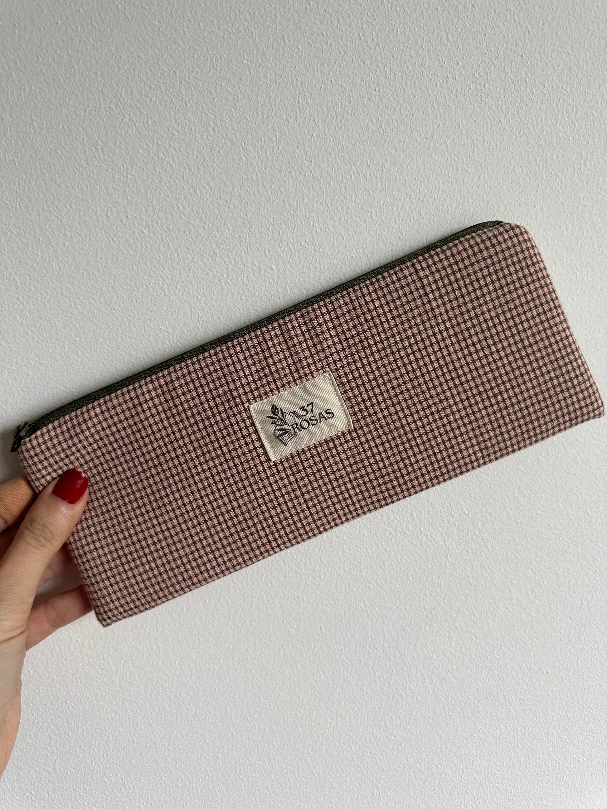 Estuche plano Vichy Rosa y Verde - Hecho a mano - 37 Rosas