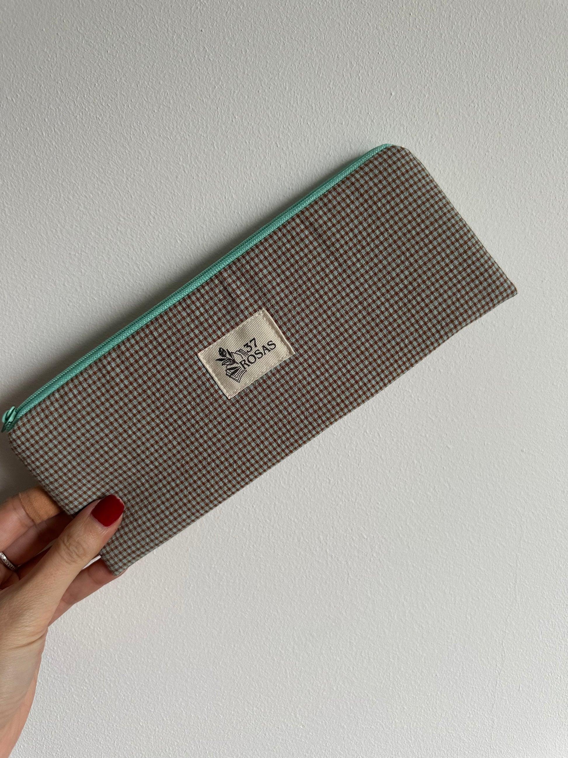 Estuche plano Vichy Turquesa y Marrón - Hecho a mano - 37 Rosas