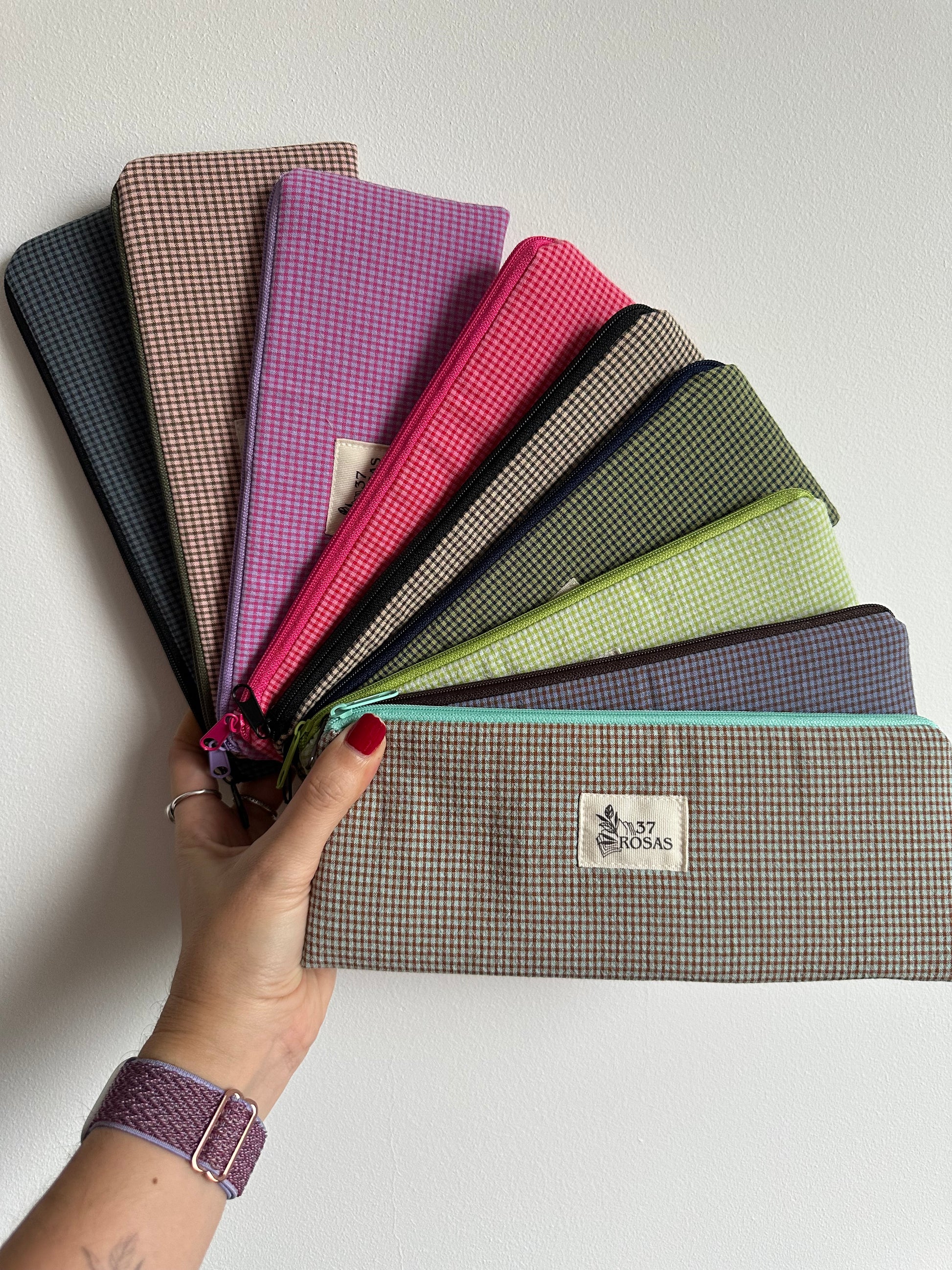 Estuche plano Vichy Vainilla y Antracita - Hecho a mano - 37 Rosas