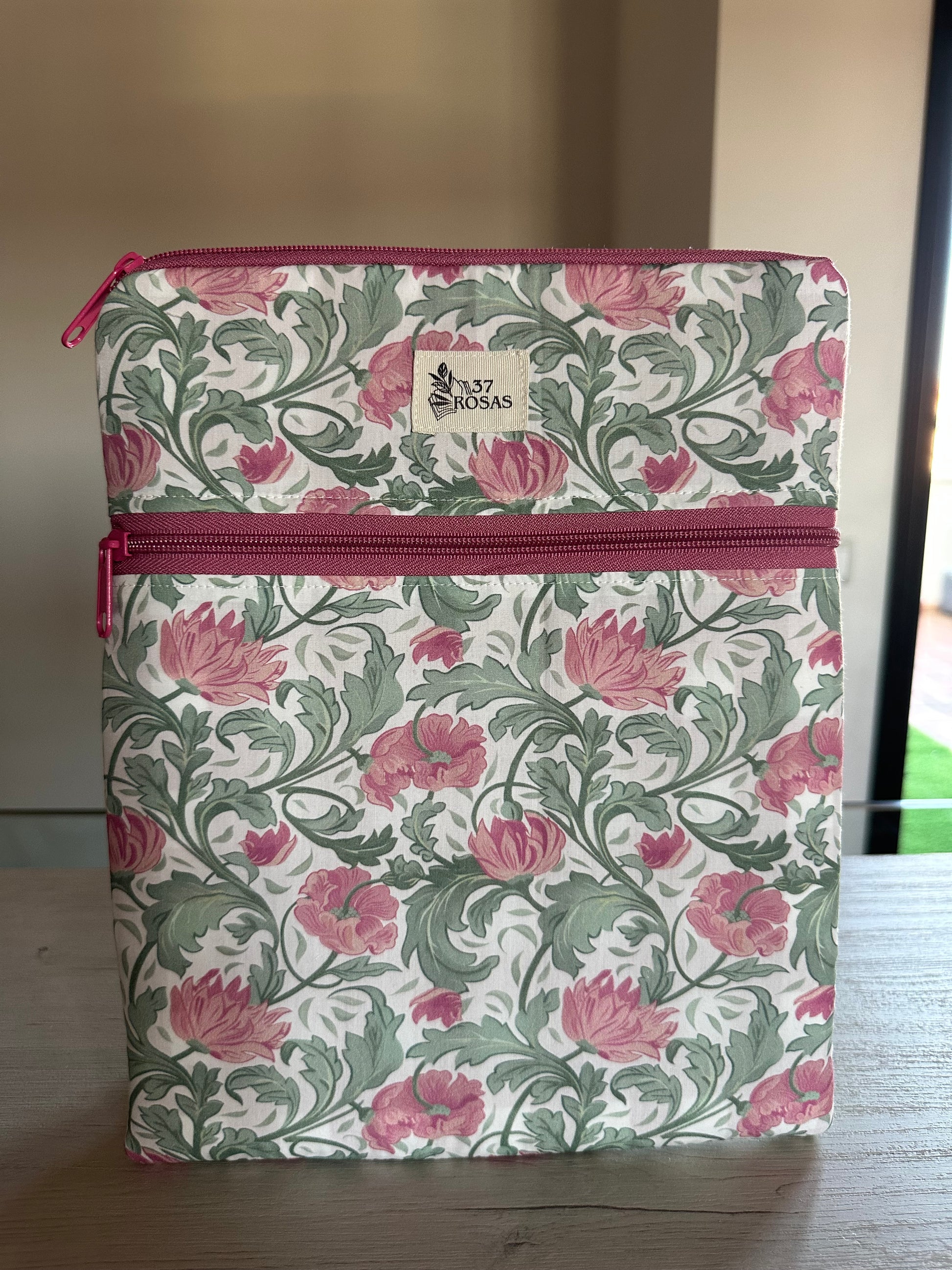 La funda de libro o tablet de la colección Aire es una pieza artesanal diseñada para quienes buscan protección, belleza y funcionalidad en un solo accesorio. Con unas medidas aproximadas de 23 × 28 cm, está confeccionada completamente a mano y destaca por el estampado de algodón premium inspirado en los diseños de William Morris.
