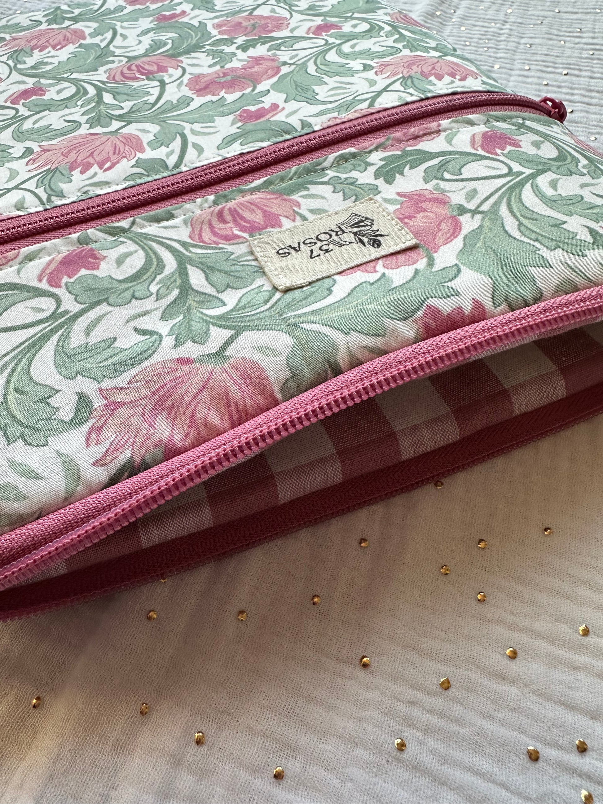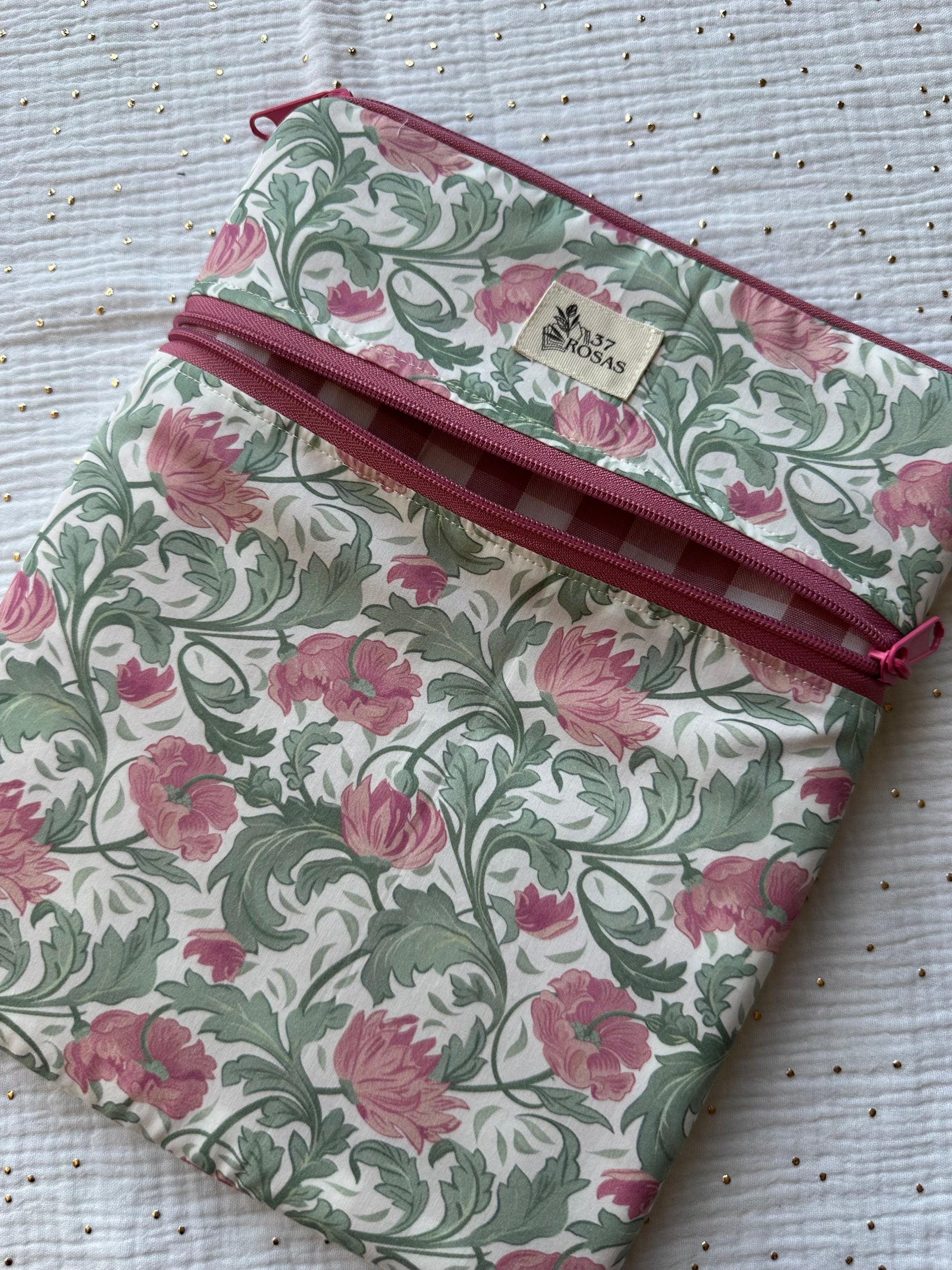 - y un bolsillo delantero con cremallera, perfecto para guardar cables, auriculares, bolígrafos, marcapáginas o cualquier accesorio que quieras tener a mano.