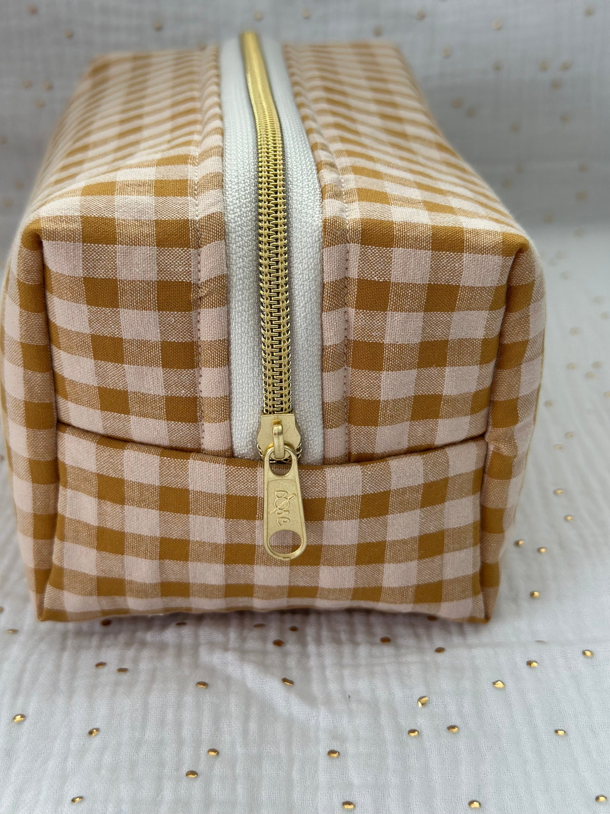 Neceser Elinor Vichy Nude y Mostaza - Perfecto para viajar