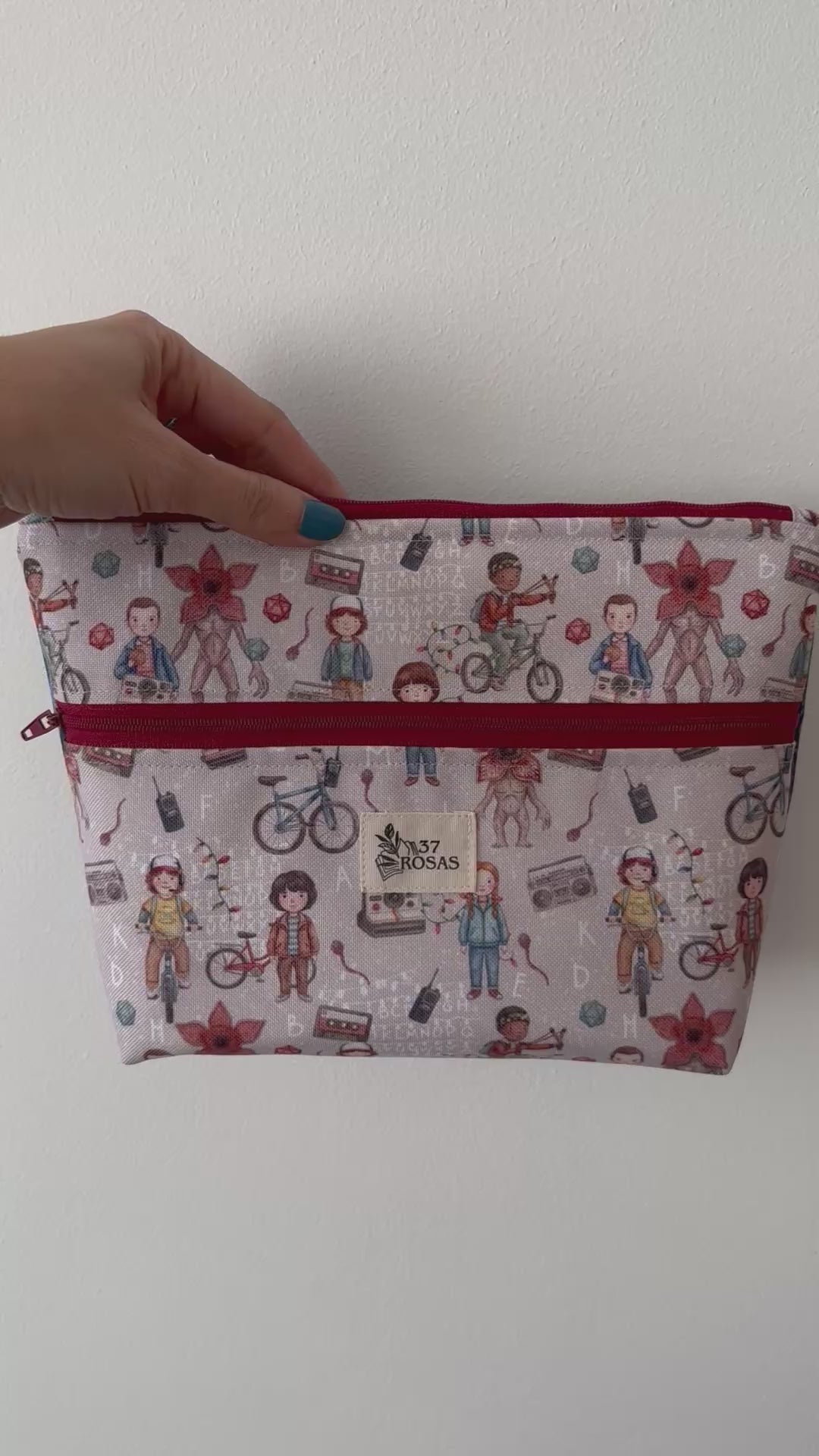 Descubre nuestro neceser Isabella, diseñado especialmente para acompañarte en tu día a día, inspirada en el universo retro y misterioso de Stranger Things. Con estampados llenos de guiños a la icónica serie, esta pieza combina estilo, nostalgia ochentera y la calidad de un producto hecho a mano con mimo. Con unas medidas aproximadas de 25x15x5 cm, este práctico accesorio es perfecto para guardar tus esenciales en el bolso: maquillaje, llaves, móvil, medicamentos o lo que necesites tener siempre a mano.